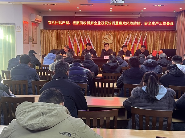 为全面落实农机补贴产销、报废更新各项惠民政策,规范工作流程,强化廉政风险防控,压实安全生产责任,推动安徽省阜阳市太和县农业机械化健康有序发展,2025年12月16日上午,太和县召开农机补贴产销、报废更新政策培训暨廉政风险防控、安全生产工作会议。县农业农村局分管负责同志、驻县农业农村局派驻纪检组组长、农机产销企业及报废回收企业负责人等参加会议,会议由县农机中心主任朱智勇同志主持。