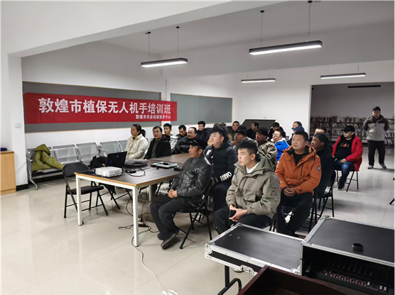 本次培训采取“理论授课+现场实操”教学模式进行。在理论授课环节,专业讲师结合敦煌棉花、玉米等农作物植保特点和需求,围绕农业无人机结构原理、飞行安全规范、维护保养等内容展开讲解,详细向学员传授航线规划、精准喷施等技能知识。