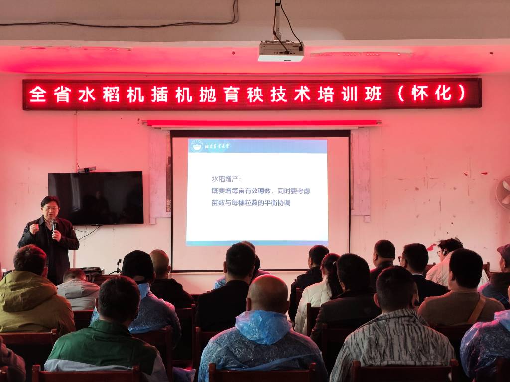 在技术培训环节,湖南农业大学傅教授围绕水稻机插机抛育秧技术进行专题授课,从育秧关键技术、苗期管理、移栽注意事项等方面作了系统讲解,帮助种植户掌握科学育秧要领。同时,专家就目前各县、市在育秧过程中发生的问题着重进行了讲解,并结合典型案例,从苗床管理、温湿度调控、病害防治等关键环节提出了具体的整改建议与技术规范,为各地提升育秧质量、保障粮食生产安全提供了有力的技术支撑。