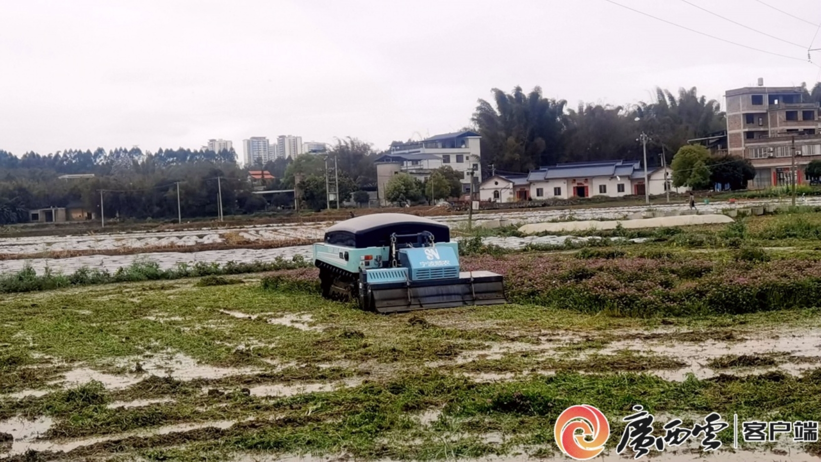 纯电动遥控旋耕机,技术人员在田边操作摇控器就可以完成这种旋耕作业。苏春莲 摄