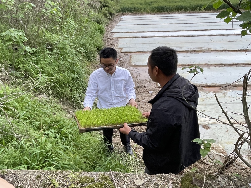 服务组深入余杭区径山镇金硕农事服务中心及育秧田块,实地查看秧苗准备以及插秧机调试状况,并就北斗监测系统应用、机插作业细节等方面提出优化建议。