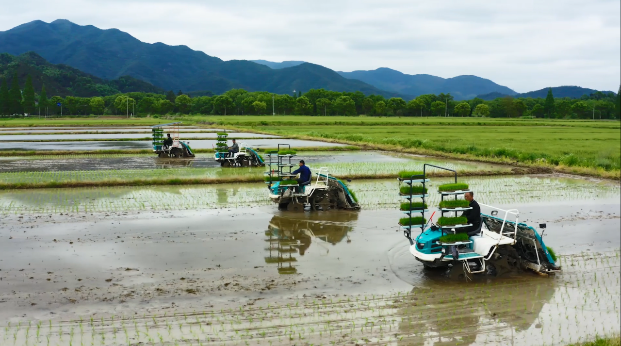当前正值早稻机插作业高峰期。在浙江省台州市临海市西兰花—水稻轮作区,插秧机穿梭田间,一株株秧苗被精准植入沃土,勾勒出一幅繁忙而有序的春耕图景。