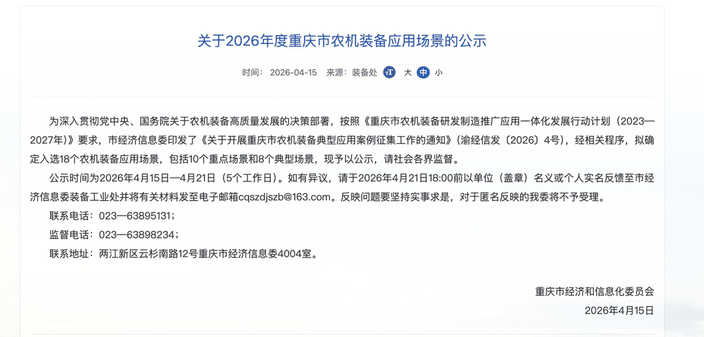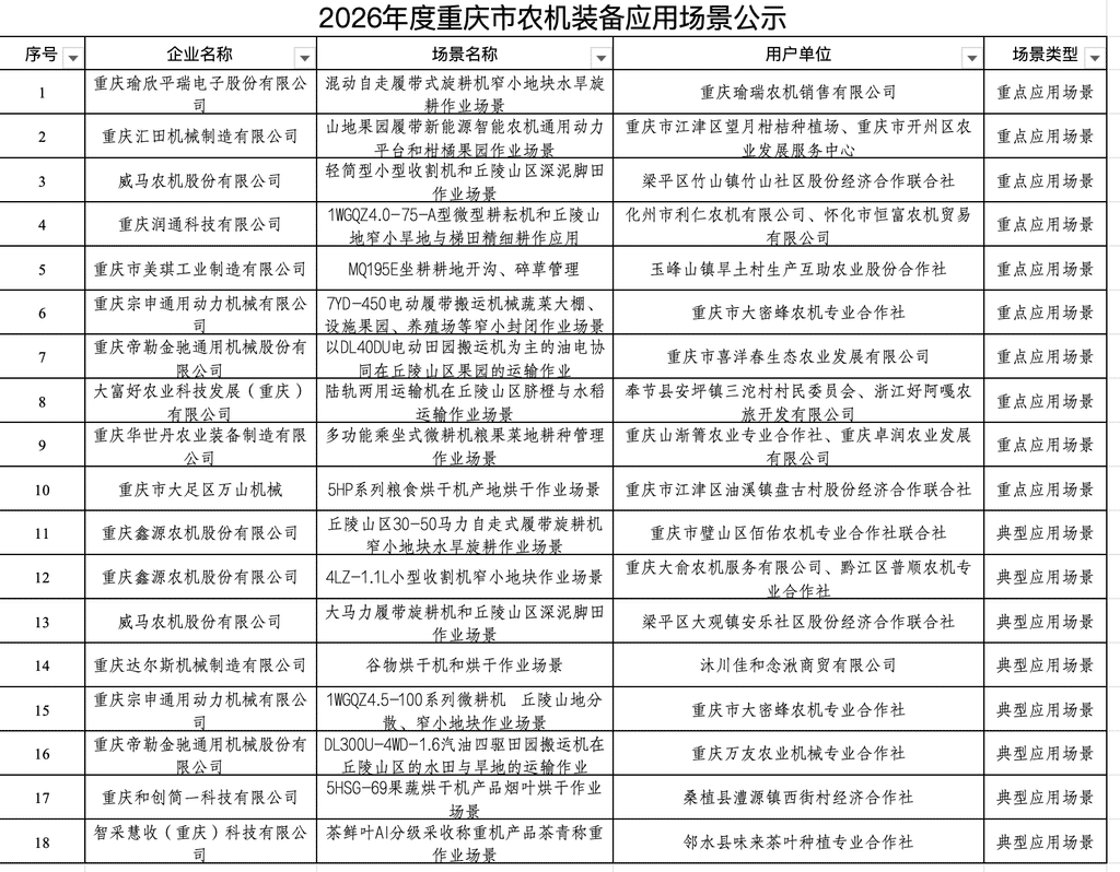 据了解,此次场景征集旨在发挥场景案例在农机装备产业发展中的示范引领作用,入选的应用案例均是已成熟的落地产品场景,具有较强的市场推广价值,且产品技术水平国内领先,产品无知识产权纠纷。