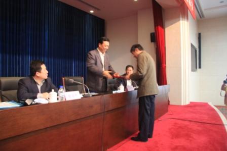 座谈会上市(州)农委代表递交了农机购置补贴政策工作责任书,省农机局副局长翟延华宣读了《关于表彰2013年全省农业系统先进集体的决定》和《关于2013年农机购置补贴政策落实绩效管理工作的通报》,会议由省农机局成洪局长主持。