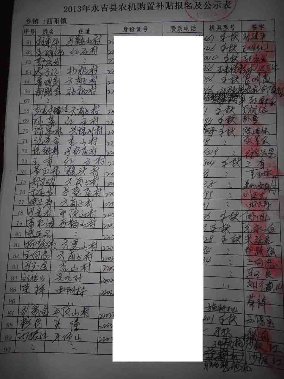 下列人员符合永吉县农机购置补贴方案要求及补贴对象的确定条件,现向社会公示,接受群众监督,公示时间为2013年4月2日-4月8日。 监督举报电话: 0432-64224668