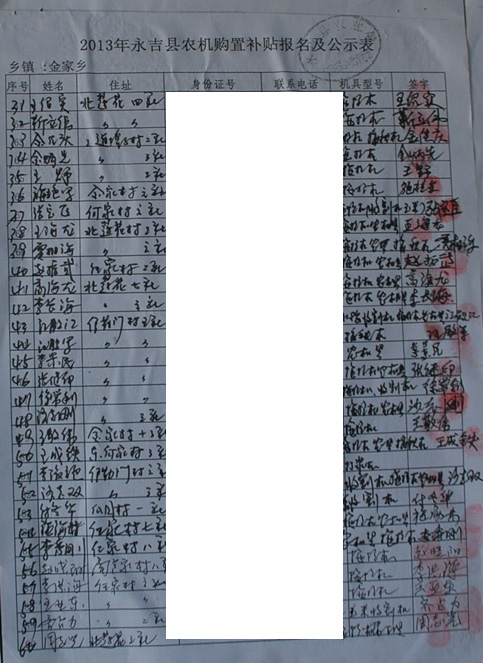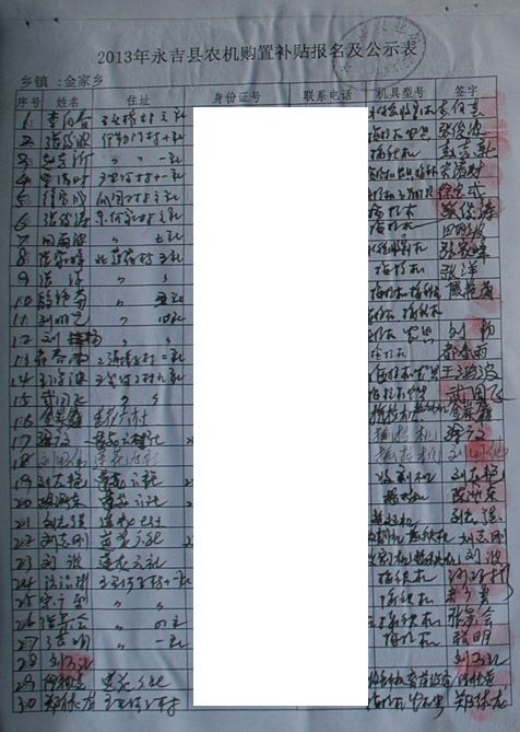 下列人员符合永吉县农机购置补贴方案要求及补贴对象的确定条件,现向社会公示,接受群众监督,公示时间为2013年4月2日-4月8日。 监督举报电话: 0432-64224668