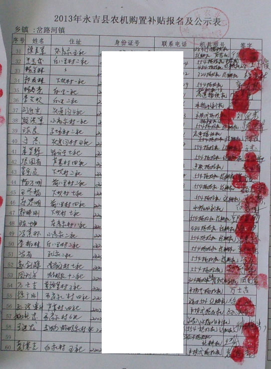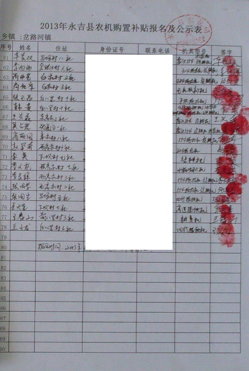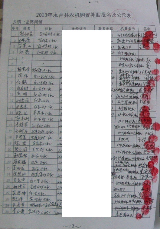 下列人员符合永吉县农机购置补贴方案要求及补贴对象的确定条件,现向社会公示,接受群众监督,公示时间为2013年4月2日-4月8日。 监督举报电话: 0432-64224668