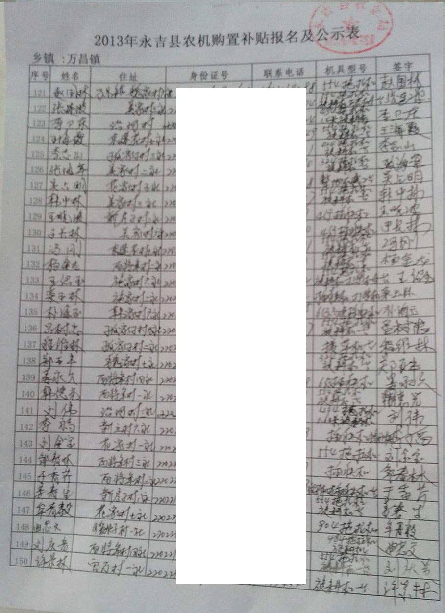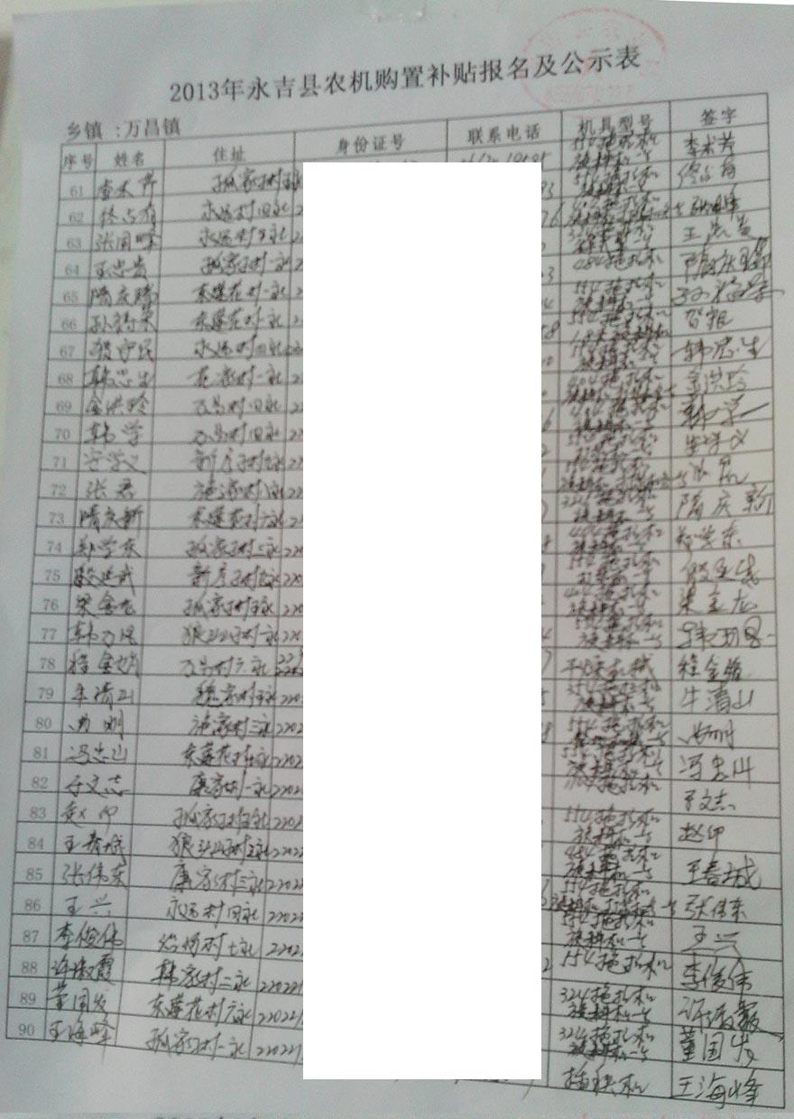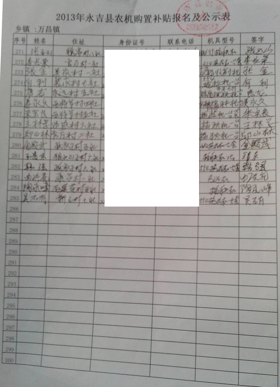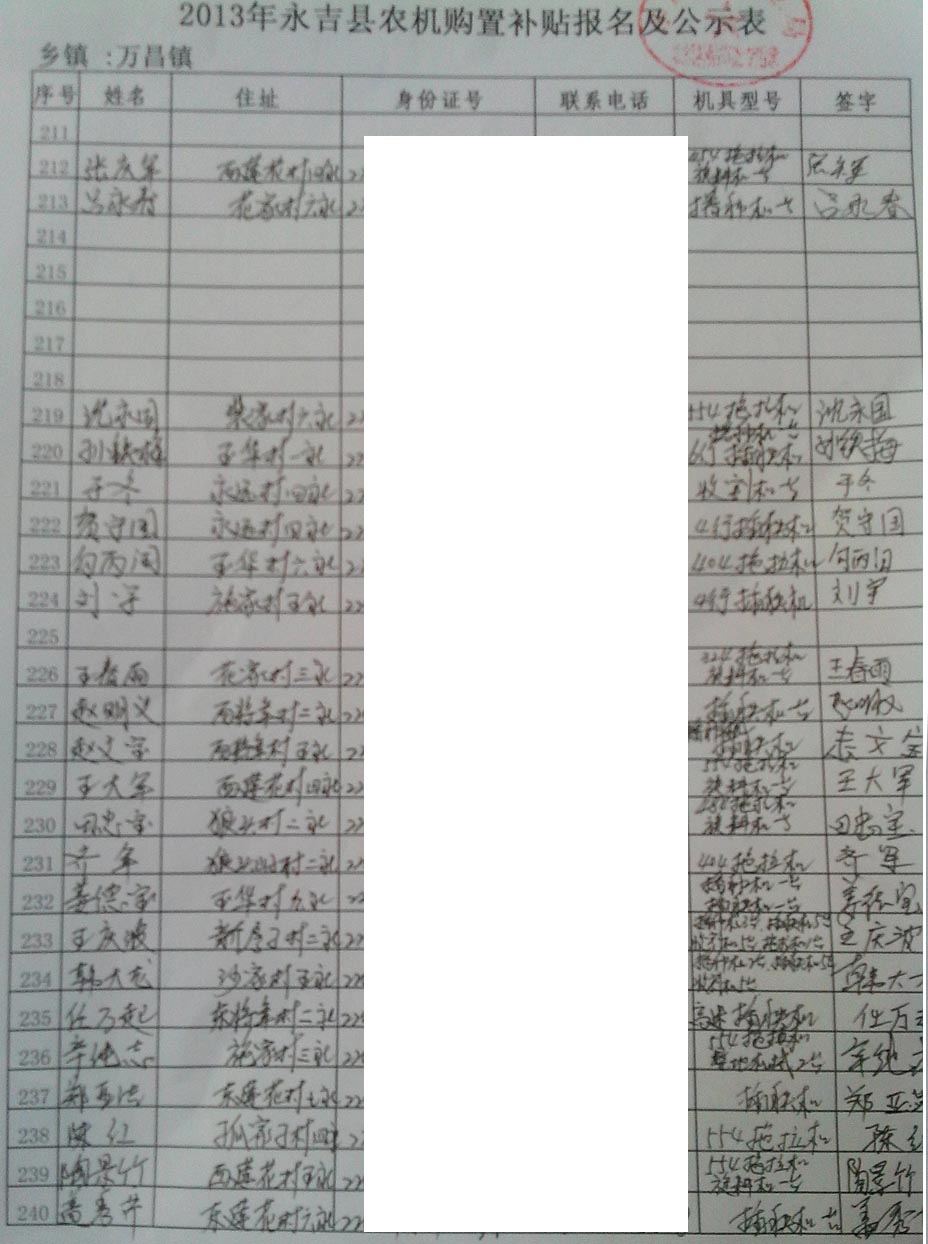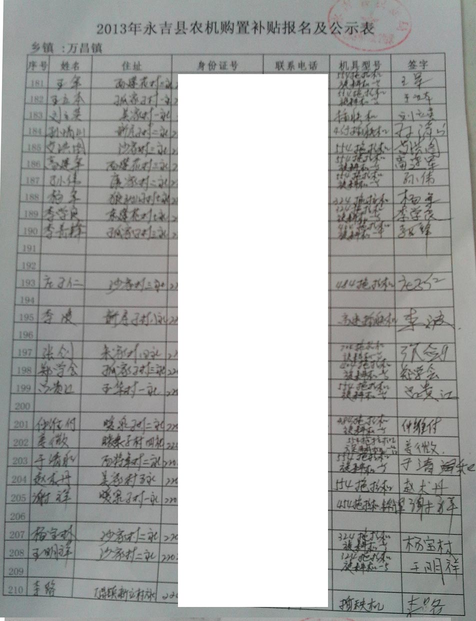 下列人员符合永吉县农机购置补贴方案要求及补贴对象的确定条件,现向社会公示,接受群众监督,公示时间为2013年4月2日-4月8日。 监督举报电话: 0432-64224668