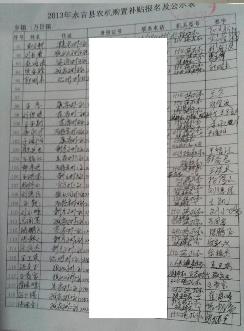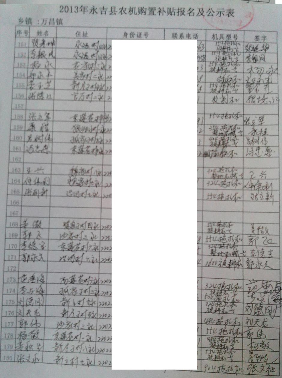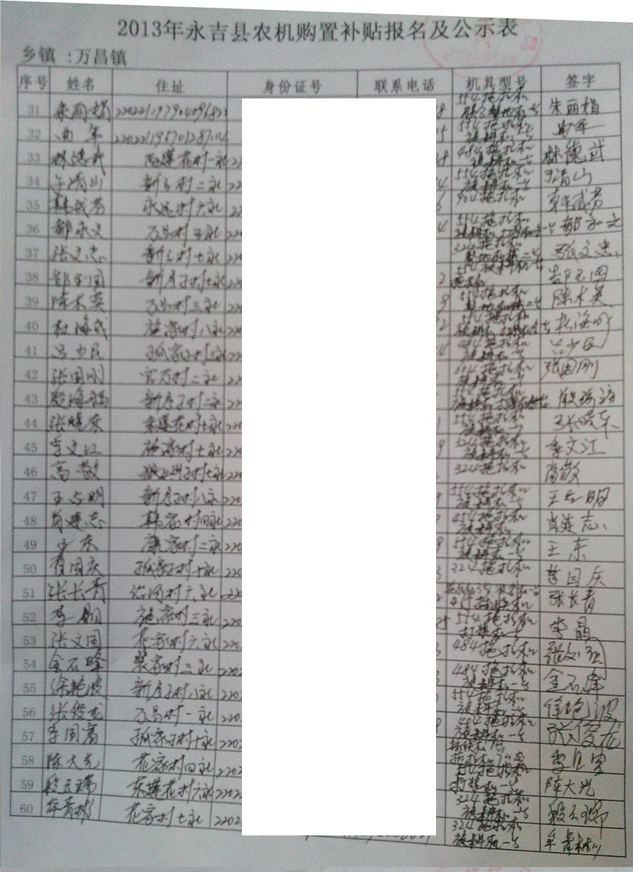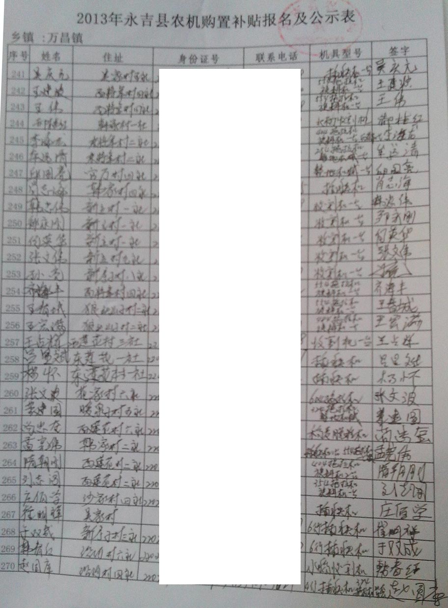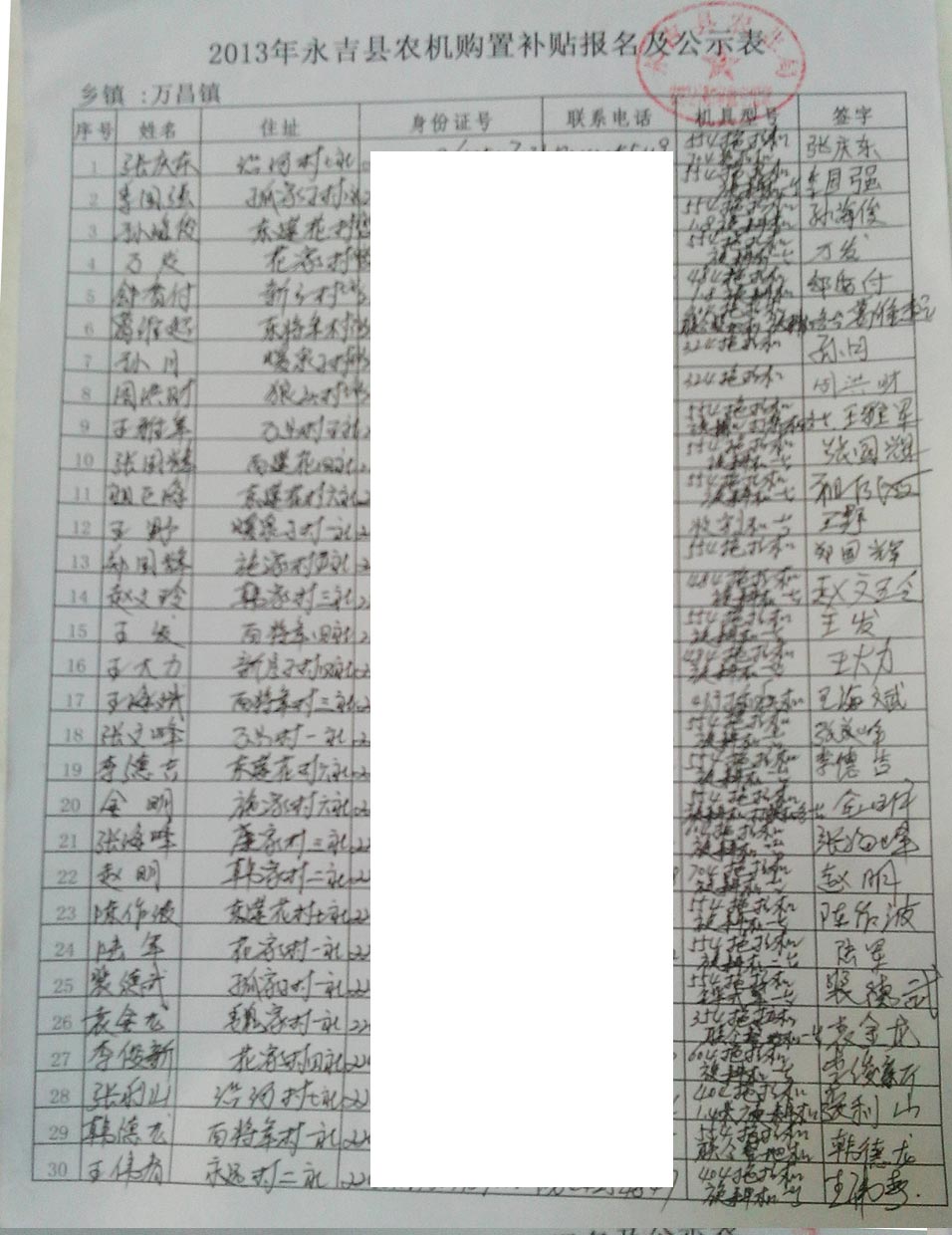 下列人员符合永吉县农机购置补贴方案要求及补贴对象的确定条件,现向社会公示,接受群众监督,公示时间为2013年4月2日-4月8日。 监督举报电话: 0432-64224668