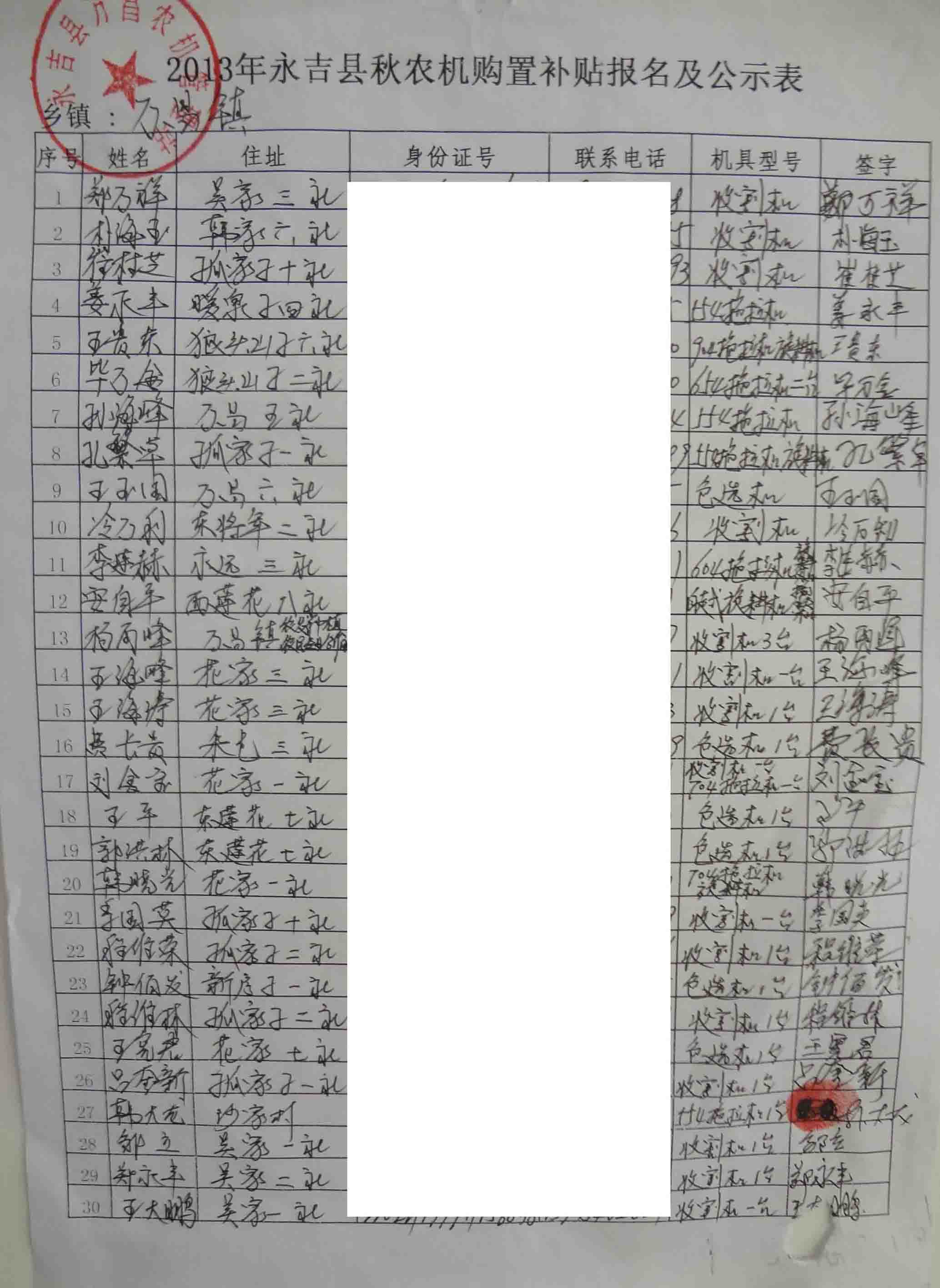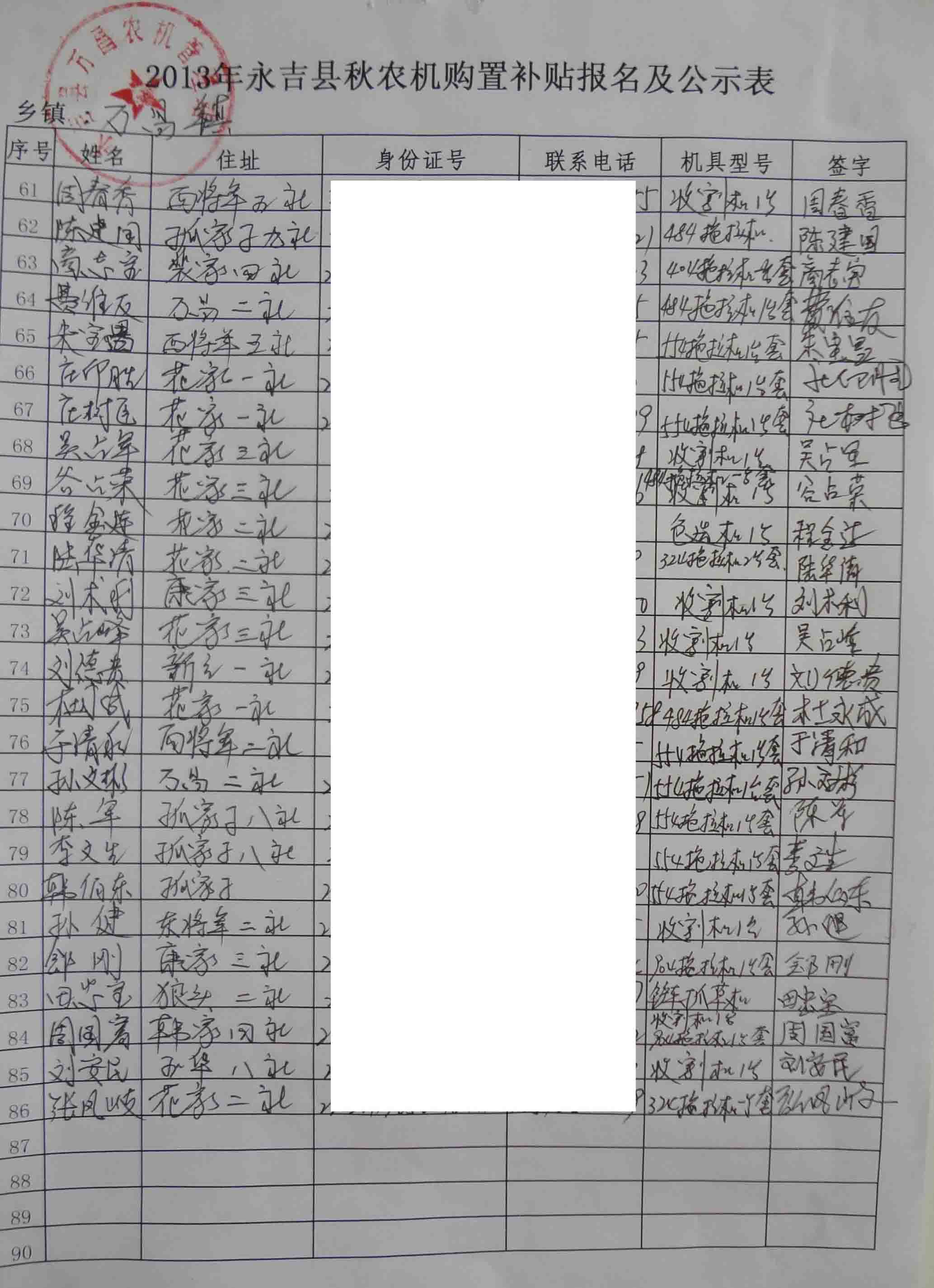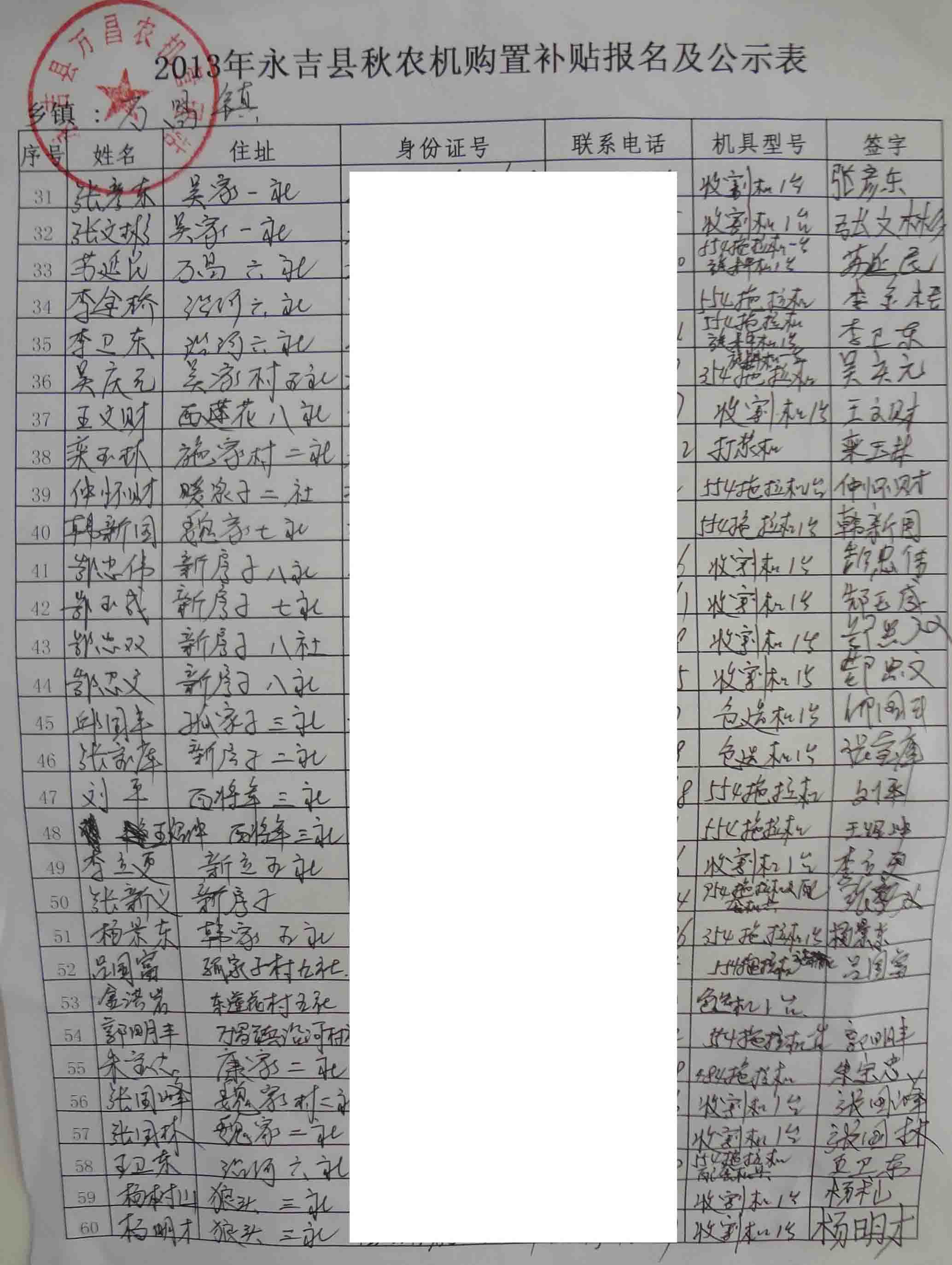 2013年秋季永吉县万昌镇农机购置补贴报名公示